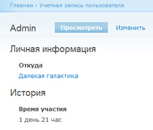 Теперь на странице нашей учетной записи появилась категория «Личная информация» и заполненная информация нового поля, представленная в виде ссылки. Перейдя по ссылке, можно видеть всех пользователей с одинаковым значением этого поля (на данный момент только один).