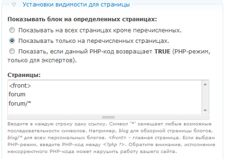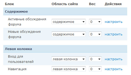 Это, разумеется, примерные настройки. Отключать все левые и правые блоки для форумов вовсе не обязательно, также как показывать блоки форума после контента.