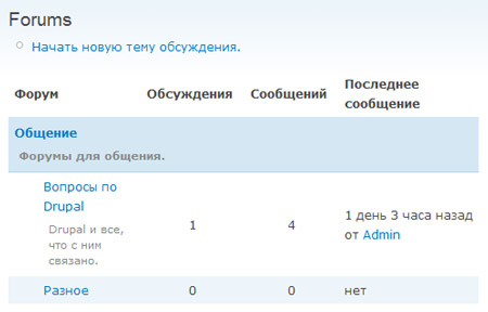 Теперь форум, которому мы дали синоним, будет сразу же показывать новый путь (старый также будет работать). Забегая вперед, добавлю, что автоматическое создание синонимов как терминов (форумов), так и нод, обеспечивает очень полезный модуль pathauto. На этапе тестирования, я думаю, нас вполне устроят стандартные системные пути типа “forum/x”.
