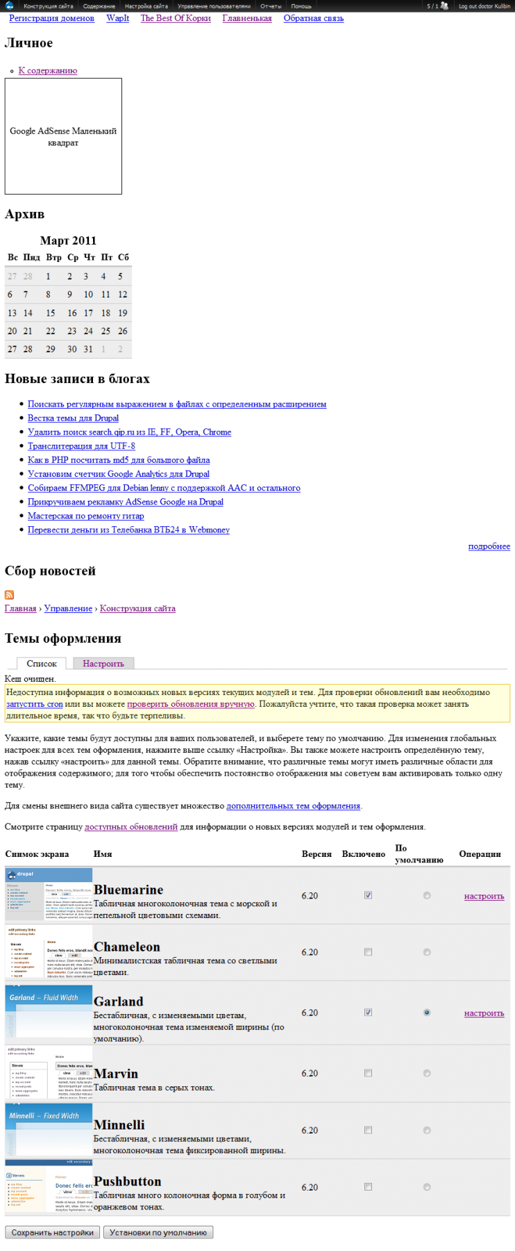 При этом Drupal сказал что "Каталог sites/default/files/color/garland-0237cf79 был создан."