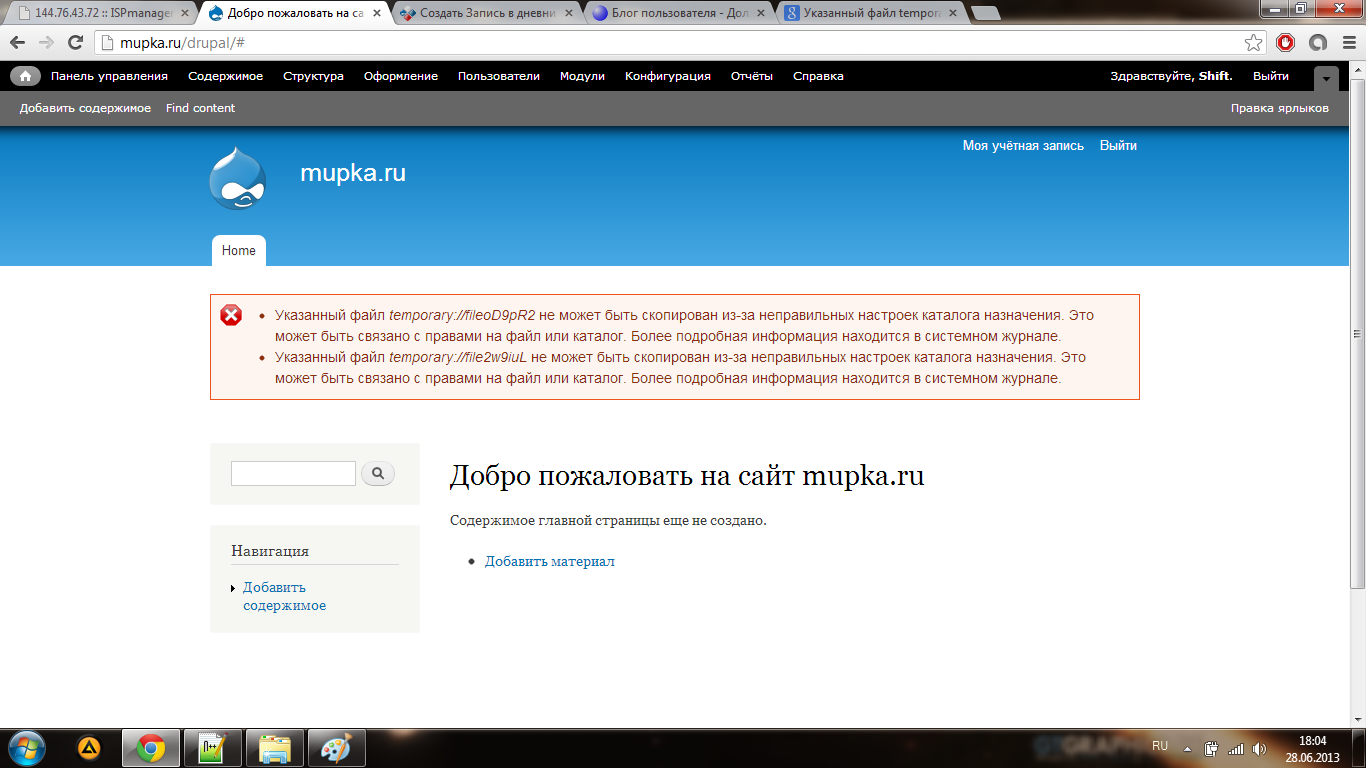 Здравствуйте! Решил изучать CMS Drupal и сразу же столкнулся с проблемкой.