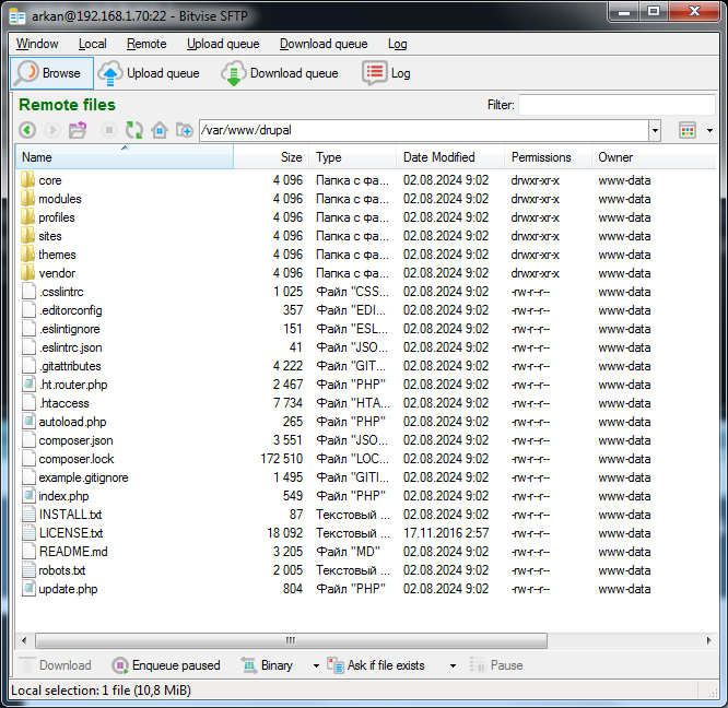Нет, это без композера. До этого были две попытки с композером - результат тот - же. Устанавливал при помощи самого композера, Папка по-моему отличалась лишь наличием каталога /web. Потом снес композер и распаковал архив в папку и снова установил. Единственное это каждый раз drupal явно ругался во время установки на отсутствие папки /sites/default/files/translations. Но ре зультаты что с композер'ом что без него были аналогичны.